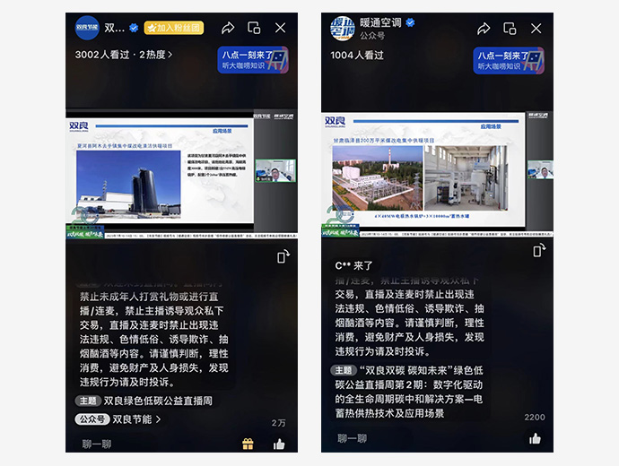本場(chǎng)主題為《數(shù)字化驅(qū)動(dòng)的全生命周期碳中和解決方案——電蓄熱供熱技術(shù)及應(yīng)用場(chǎng)景》的“綠色低碳公益直播”累計(jì)觀看人數(shù)超4000人次,點(diǎn)贊數(shù)超20000次。未來,我們將繼續(xù)踐行碳中和使命,賦能低碳社會(huì),用科技改變世界,以“人類命運(yùn)共同體”的視角創(chuàng)造人類共同利益和價(jià)值。